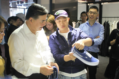 上海政协副主席徐逸波等领导一行前来参观。徐主席在现场不停的与参展品牌商交流。
